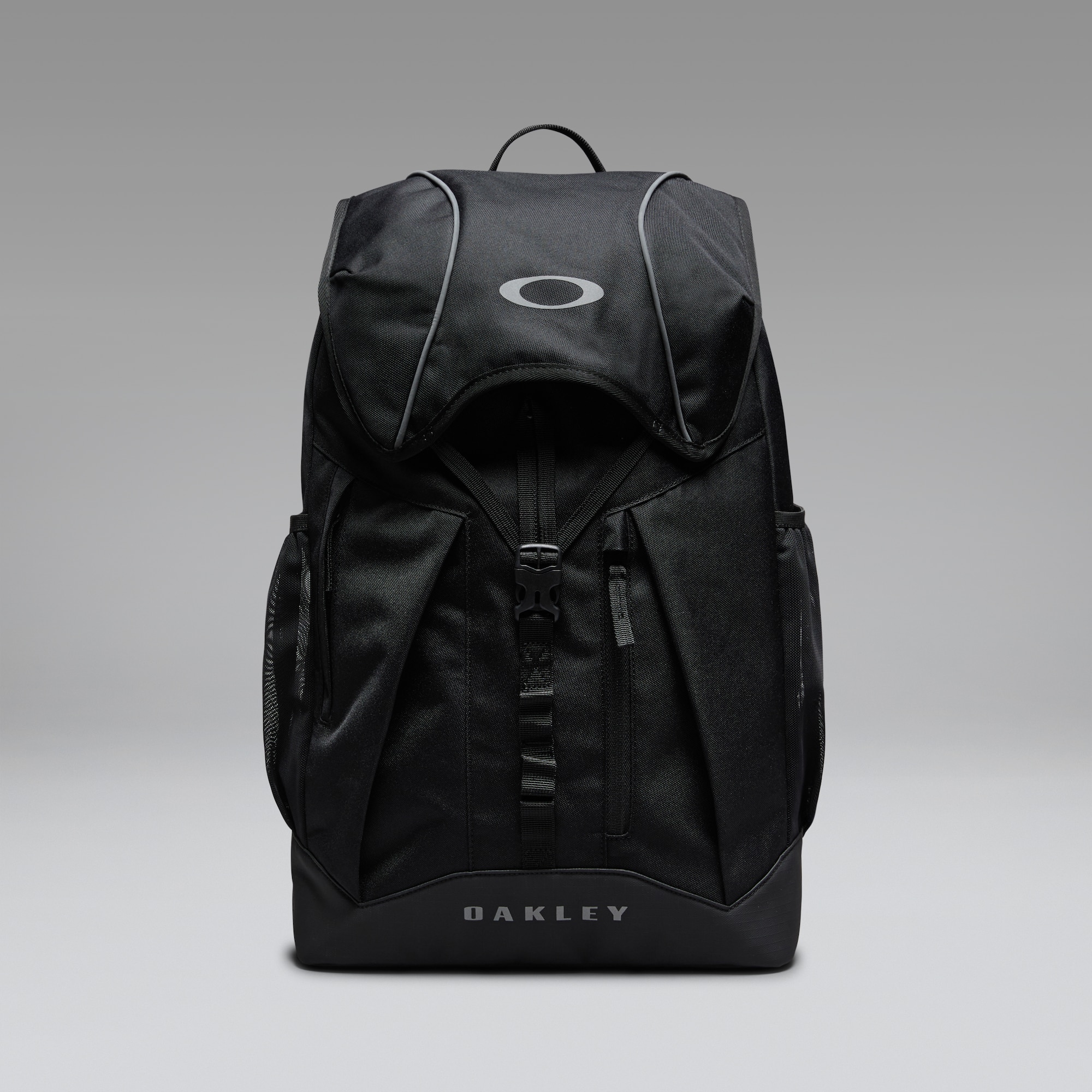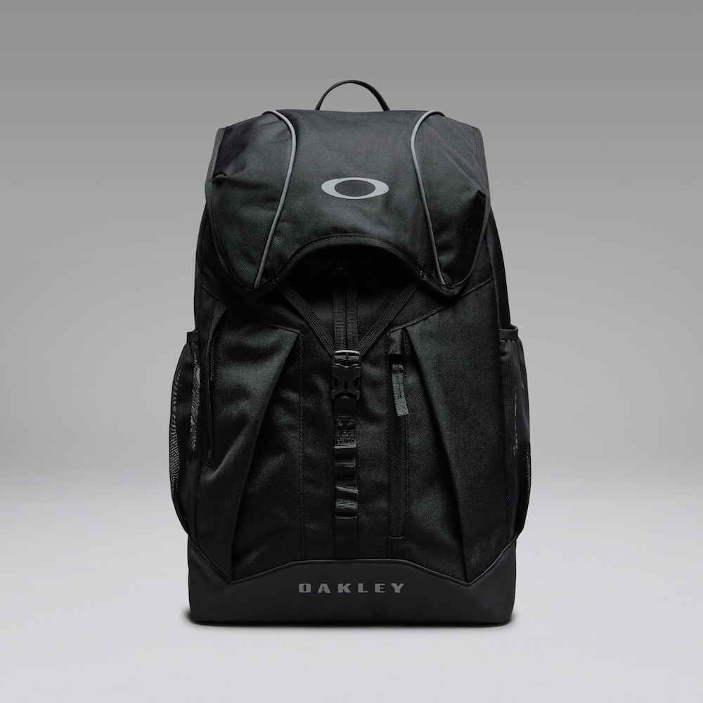 Built to handle busy school routines, the Oakley Spark Max Backpack features a water-resistant, abrasion-resistant poly canvas construction with a flap-cover main compartment secured by an adjustable clip closure. Inside, a laptop sleeve and a small zippered mesh pocket keep devices and essentials protected and organized. Two zippered front pockets expand storage options, including a microfibre-lined eyewear pocket. Dual lateral mesh pockets, padded adjustable shoulder straps with a chest strap, and a gros-grain top haul loop round out the carry features. Finished with Oakley Bark and Ellipse branding, branded lining, and reflective details for enhanced visibility at night.