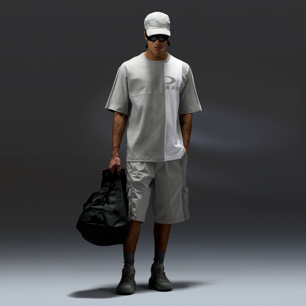 This deconstructed cotton tee cleverly mixes different effects and techniques for a highly original design. From the half-ripped effect and half heavier gauge collar, to the mismatched bottoms hems and the sleeve construction that is part kimono and part set-in, every detail is a study in advanced craftsmanship. Fittingly, the branding on the front also takes the form of a deconstructed Oakley Bark logo that uses mixed printing techniques: digital print and 3D raised print. The fashionable boxy fit underlines the relaxed, casual vibe.This deconstructed cotton tee cleverly mixes different effects and techniques for a highly original design. From the half-ripped effect and half heavier gauge collar, to the mismatched bottoms hems and the sleeve construction that is part kimono and part set-in, every detail is a study in advanced craftsmanship. Fittingly, the branding on the front also takes the form of a deconstructed Oakley Bark logo that uses mixed printing techniques: digital print and 3D raised print. The fashionable boxy fit underlines the relaxed, casual vibe.