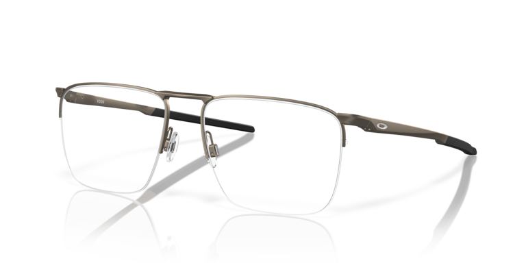 Voon, a rectangular look with fluid, fresh design in a semi-rim wireframe. The lightweight C5 material and sculpted silhouette delivers clean lines and sleek style. Unobtainium® earsocks help ensure your glasses stay right where you want them. And adjustable Grip-fit clear nosepads let you choose your comfort. Order yours with Oakley Authentic Prescription lenses that come laser-etched with the ellipse logo for proof of Oakley authenticity.