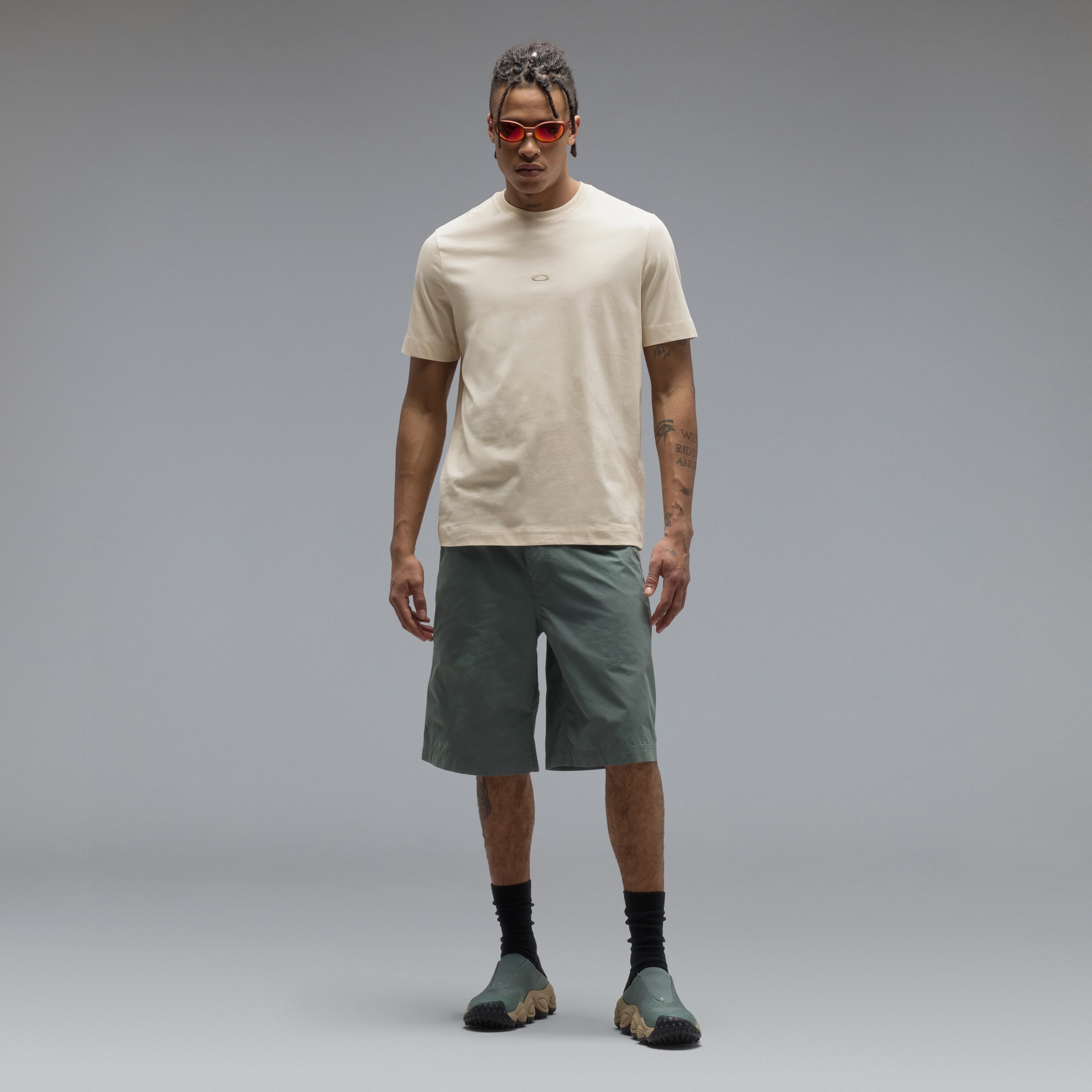 100% cotton regular fit t-shirt with ribbed collar design and taping around the inside of the neck for added comfort and protection. The plain front, embellished only with a small embroidered Ellipse logo at the center, contrasts with the eye-catching digital printed artwork on the back.