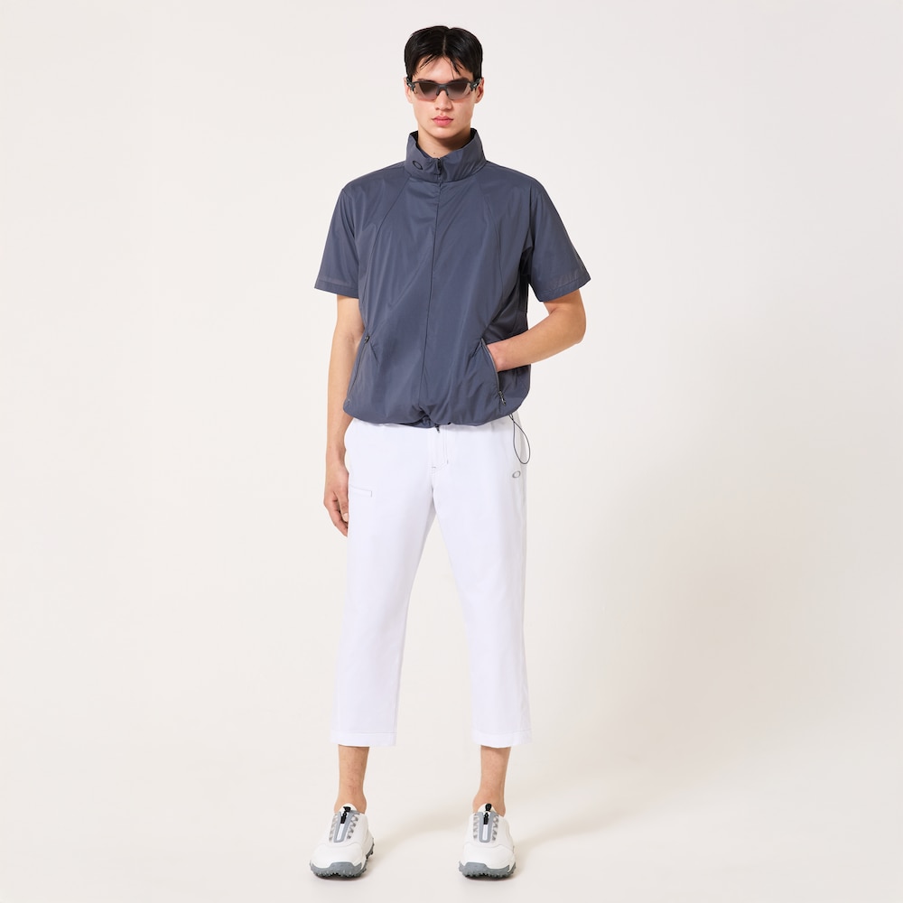 Original short-sleeve wind jacket tailor-made for that unpredictable spring weather out on the course. Made from a lightweight stretch nylon material finished with a windproof coating that also forms an effective barrier against the rain, it is constructed with a roomy silhouette to guarantee maximum freedom of movement and a back panel that provides additional ventilation. Simple yet versatile design elevated with a Skull logo print on the right shoulder and side pockets with metal zippers.