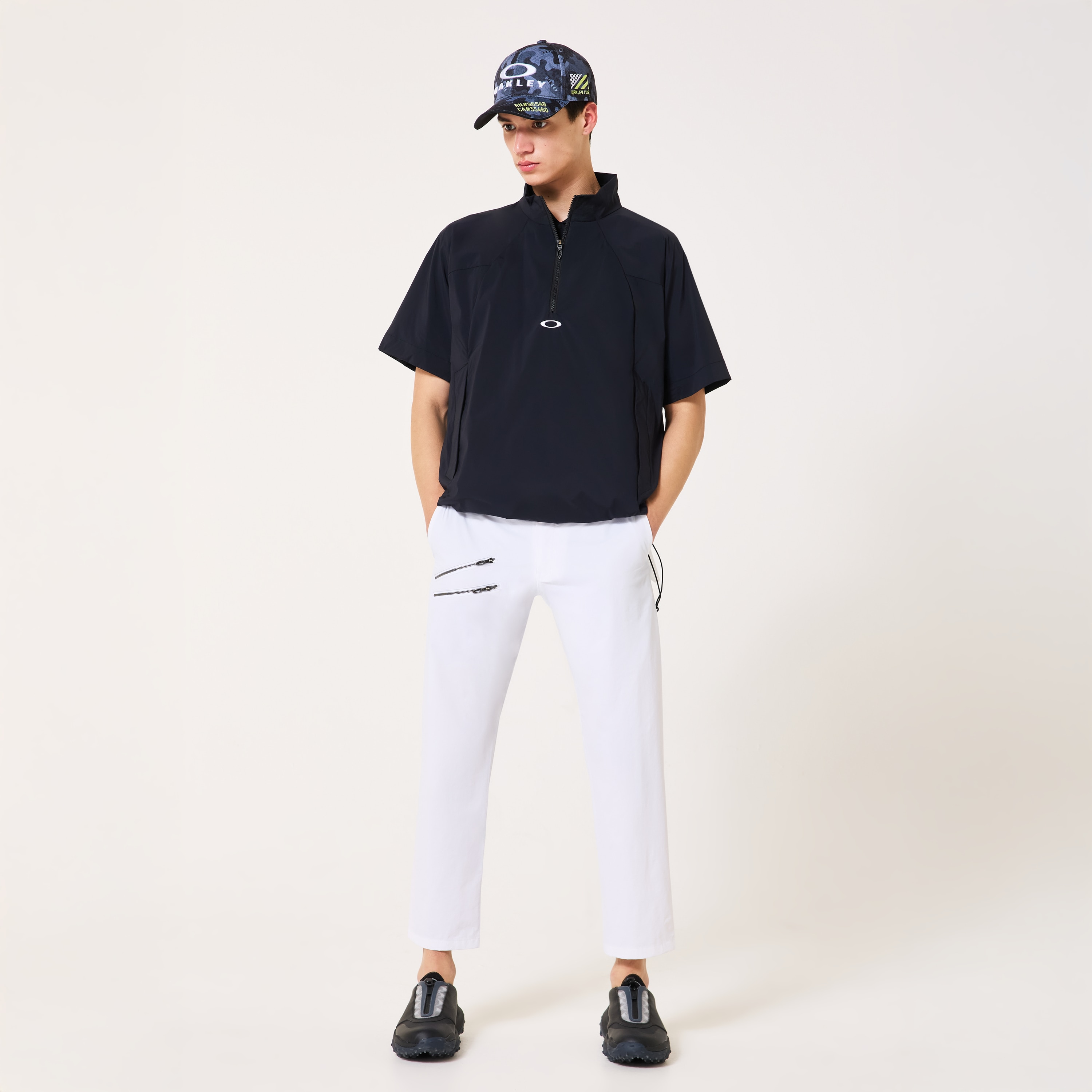 Sure to come in handy at the start of spring, this short-sleeved pullover wind jacket constructed from a bouncy nylon-based rip fabric is a reliable addition to your golfwear closet, guaranteeing lightweight comfort, excellent elasticity that won’t restrict your swing, and cutting-edge water-repellency properties. Featuring a half-zip fastening, stand collar and useful waist pockets, the simple design makes the jacket a versatile item that can also be worn away from the course.Sure to come in handy at the start of spring, this short-sleeved pullover wind jacket constructed from a bouncy nylon-based rip fabric is a reliable addition to your golfwear closet, guaranteeing lightweight comfort, excellent elasticity that won’t restrict your swing, and cutting-edge water-repellency properties. Featuring a half-zip fastening, stand collar and useful waist pockets, the simple design makes the jacket a versatile item that can also be worn away from the course.
