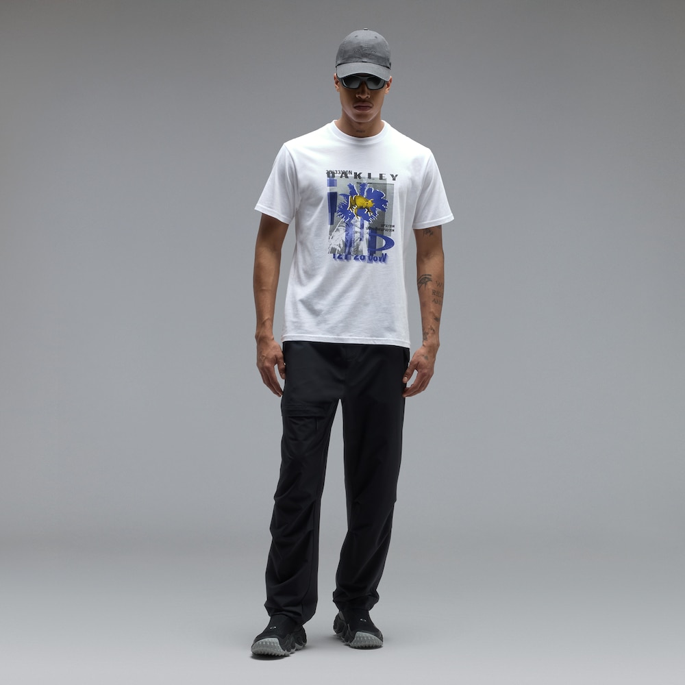 Regular-fit 100% cotton t-shirt with a distinctive screen-printed artwork that dominates the front. Durable straight side seam and ribbed collar with inner taping for extra comfort around the neck. Plain back with the exception of the Oakley signature back leash holder, a subtle nod to the brand’s eyewear.