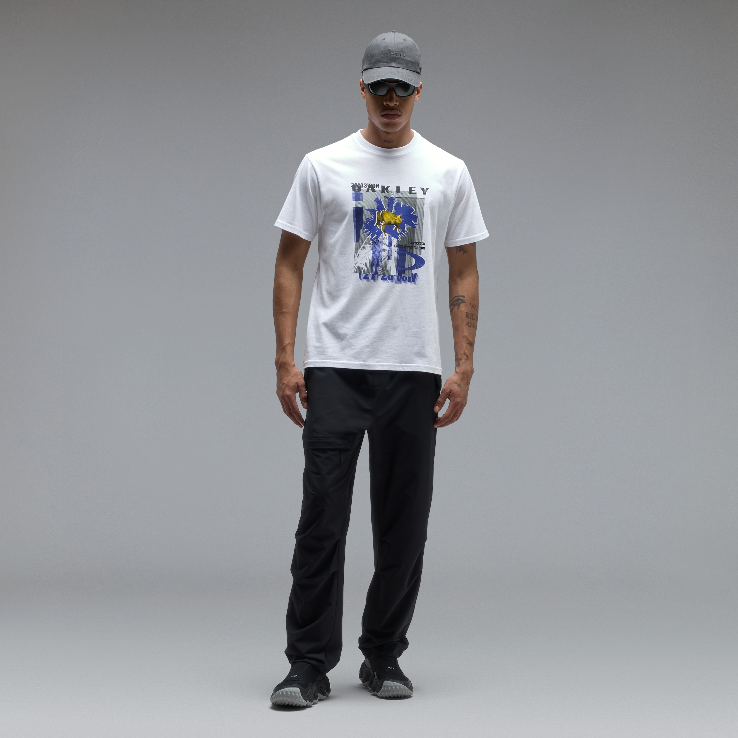Regular-fit 100% cotton t-shirt with a distinctive screen-printed artwork that dominates the front. Durable straight side seam and ribbed collar with inner taping for extra comfort around the neck. Plain back with the exception of the Oakley signature back leash holder, a subtle nod to the brand’s eyewear.Regular-fit 100% cotton t-shirt with a distinctive screen-printed artwork that dominates the front. Durable straight side seam and ribbed collar with inner taping for extra comfort around the neck. Plain back with the exception of the Oakley signature back leash holder, a subtle nod to the brand’s eyewear.