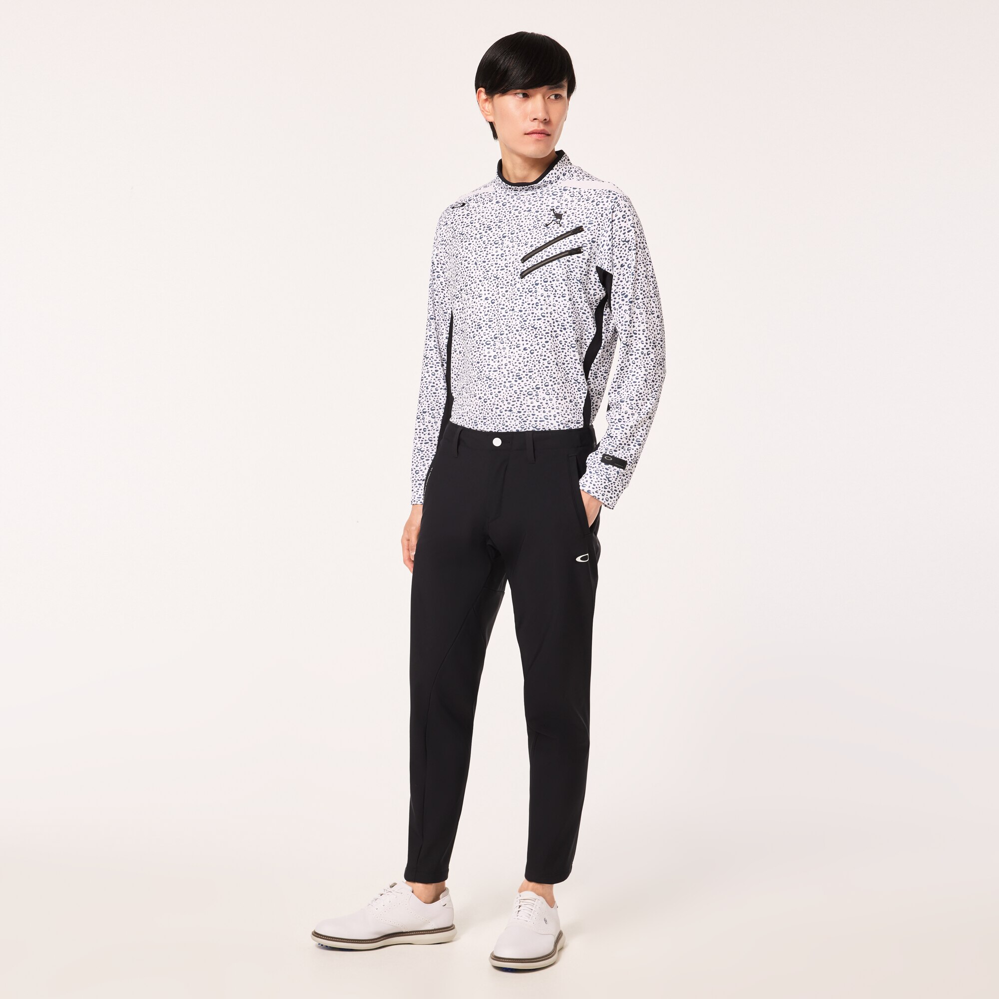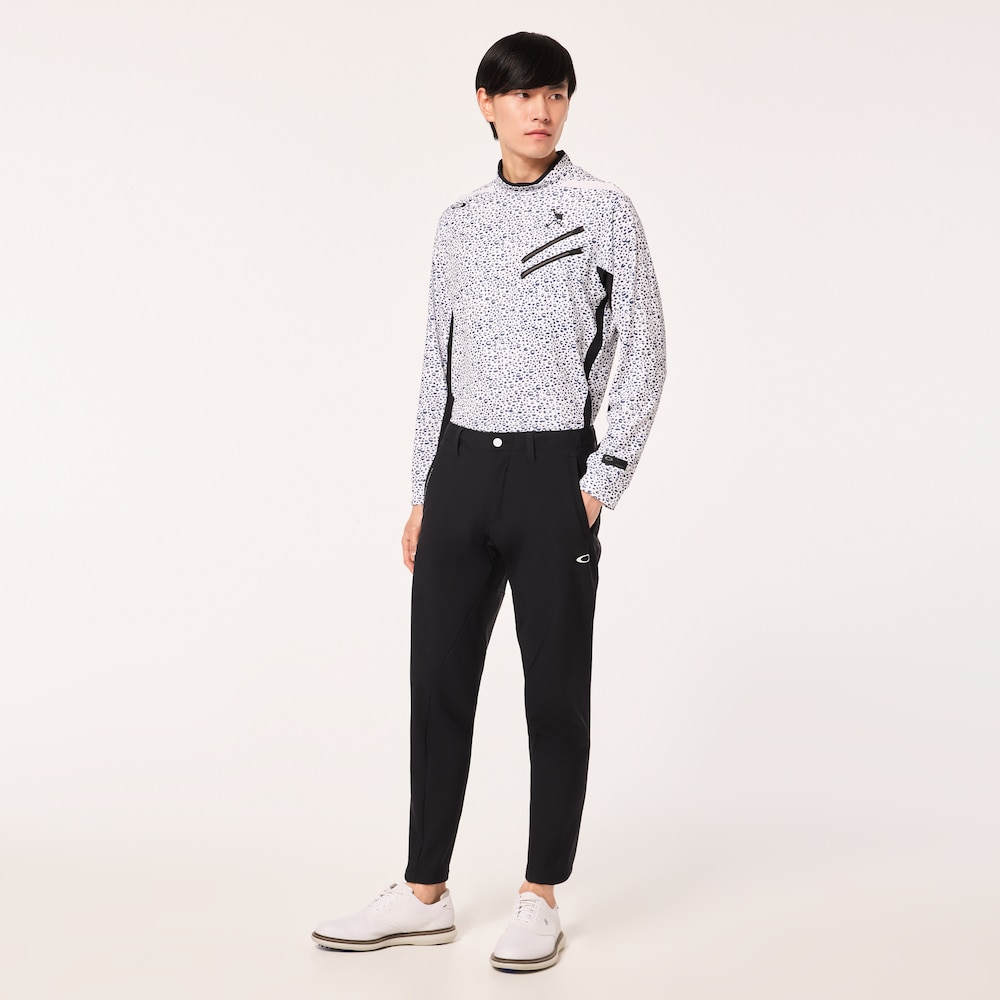 ゴルフに特化した身体とのシンクロを追求したWHITE LABELの3Dテーパードパンツ。究極の快適性を求めた立体パターンを開発し、立体でありながら極限まで縫い目を減らすことで膝の屈伸の際のストレスと共に縫い目によるストレスも軽減。上質なトリコットの裏面にフィルムと肌触りの良いフリースを貼り合わせる事によって防風効果とストレッチ性を持たせた素材を採用。スッキリしたシルエットで冬まで快適なプレーをサポートする。ベルト裏全体にはシャツが出るのを防ぐシリコンテープを配置。WHITEのカーボン調のロゴとプリント、WHITEの付属が大人のスポーツテイストを演出。(股下寸法 US/30インチ=73cm)