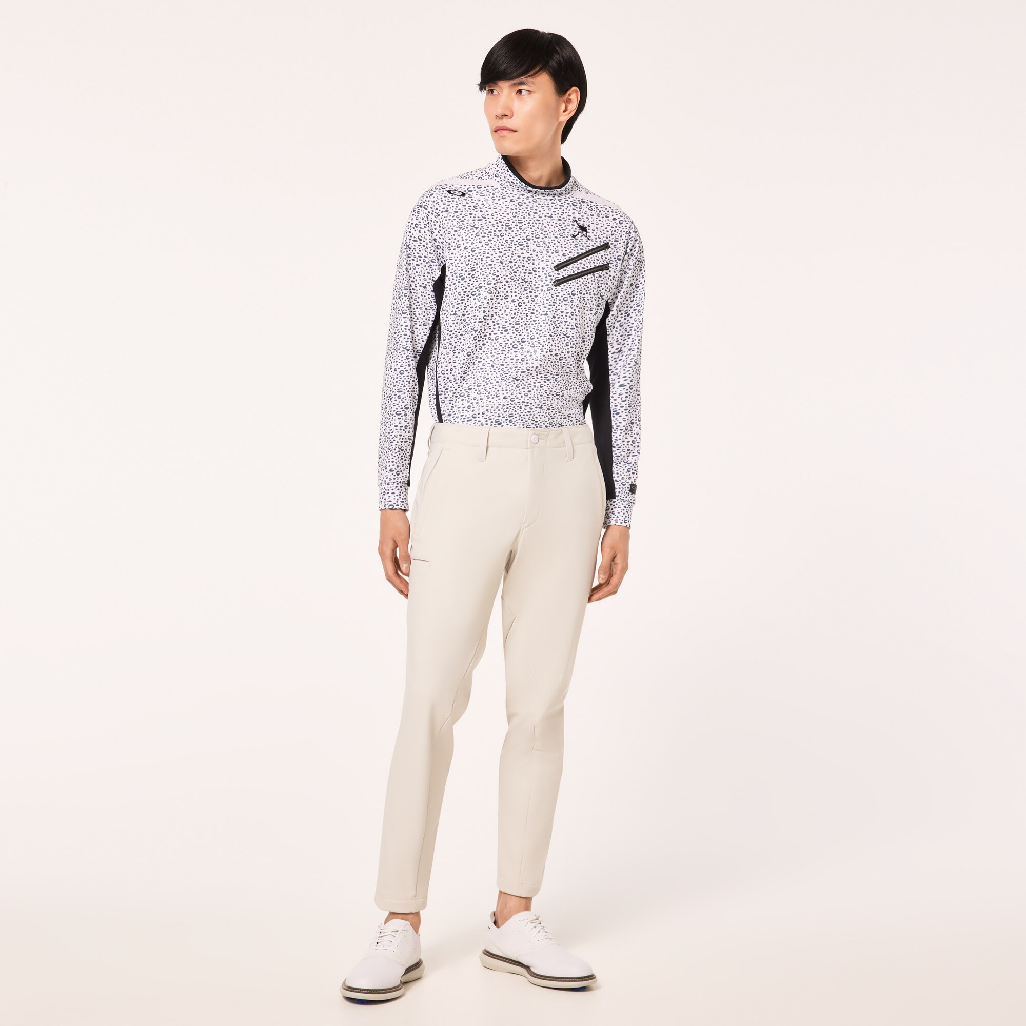 ゴルフに特化した身体とのシンクロを追求したWHITE LABELの3Dテーパードパンツ。究極の快適性を求めた立体パターンを開発し、立体でありながら極限まで縫い目を減らすことで膝の屈伸の際のストレスと共に縫い目によるストレスも軽減。上質なトリコットの裏面にフィルムと肌触りの良いフリースを貼り合わせる事によって防風効果とストレッチ性を持たせた素材を採用。スッキリしたシルエットで冬まで快適なプレーをサポートする。ベルト裏全体にはシャツが出るのを防ぐシリコンテープを配置。WHITEのカーボン調のロゴとプリント、WHITEの付属が大人のスポーツテイストを演出。(股下寸法 US/30インチ=73cm)