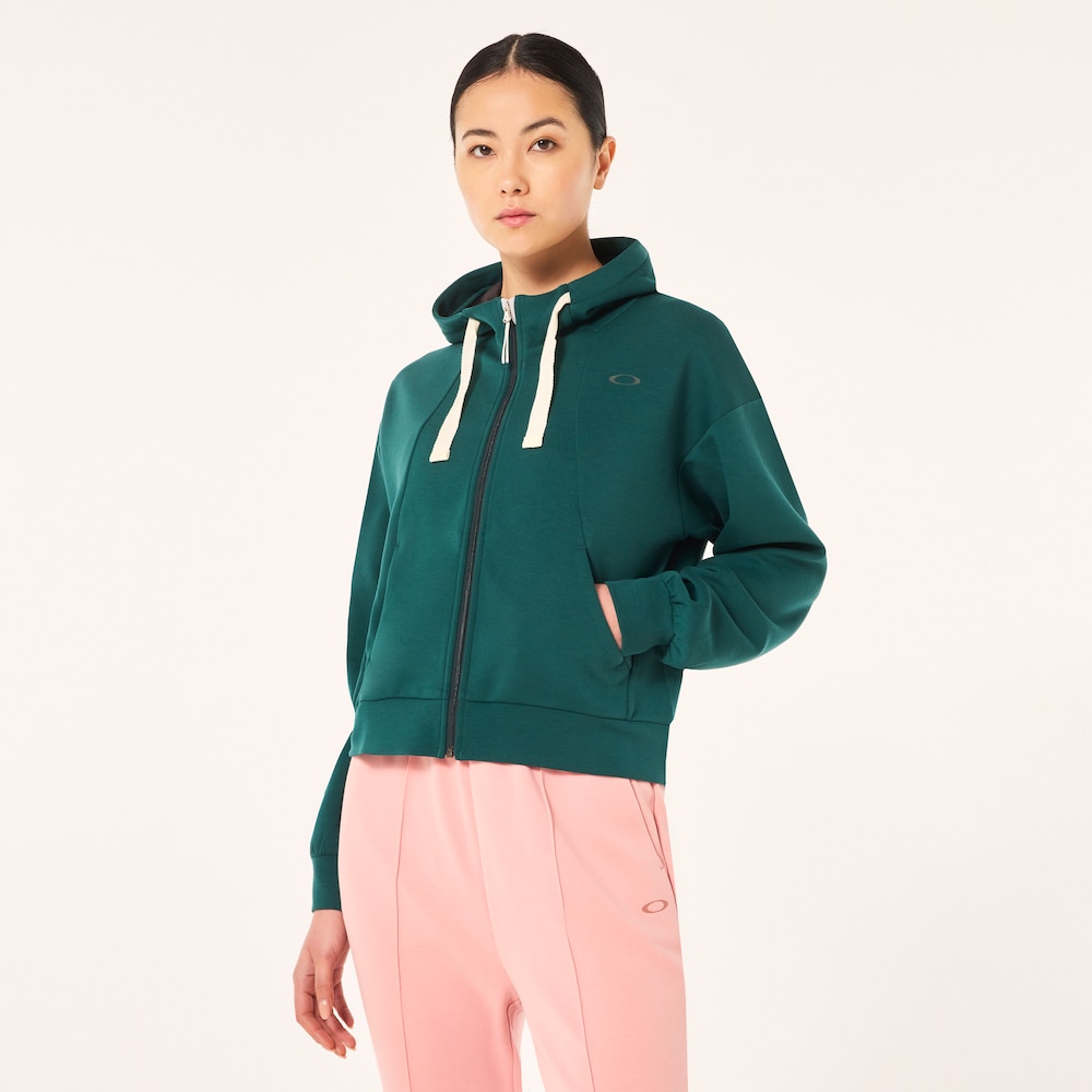 体の一部のようにソフトになじむフリース素材を使ったショートフーディージャケット。軽くて伸縮性がいいのでワークアウトのみならず、デイリーウェアとしても活躍してくれます。シンプルなデザインは様々なボトムとコーディネートが可能。